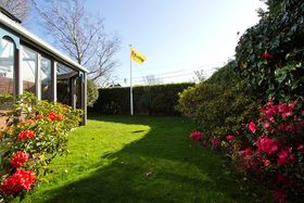 Relax in the sunny idyllic peacful garden with paved courtyard and curved brick fencing. Sit under the glass atrium and read a book or enjoy watching the birds in the well planted and landscaped garden.