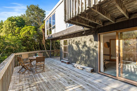 Bedrooms and living areas are all of generous proportions, each with their own wonderful outlook, and often with indoor/outdoor flow to an exterior deck! You'll love the well appointed kitchen with impressive stone island bench, such a perfect fit for family life - dine at the breakfast bar, plus room to create an informal 'nook' with comfy seating. The main living area with woodburner is an excellent space to relax in when the sun goes down.